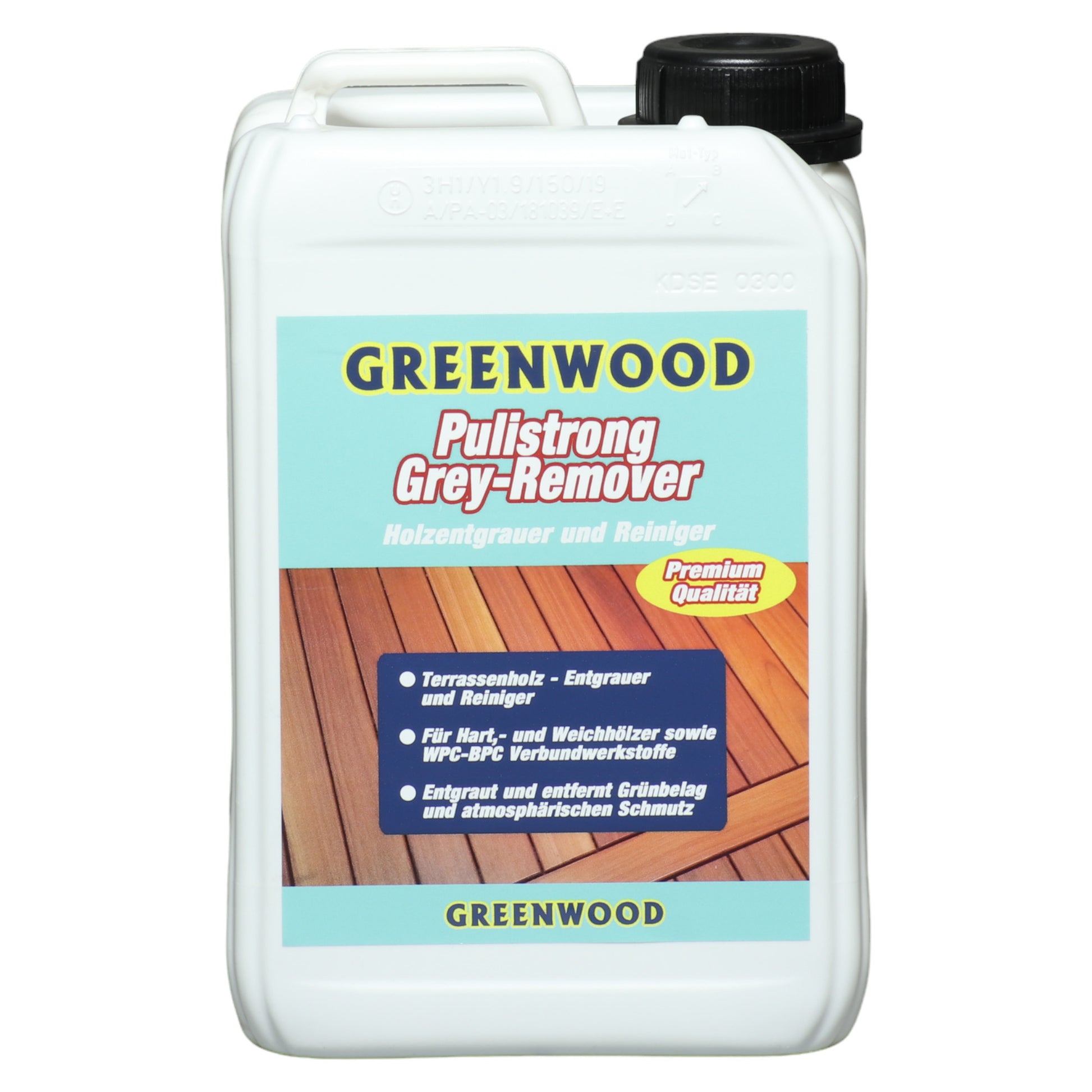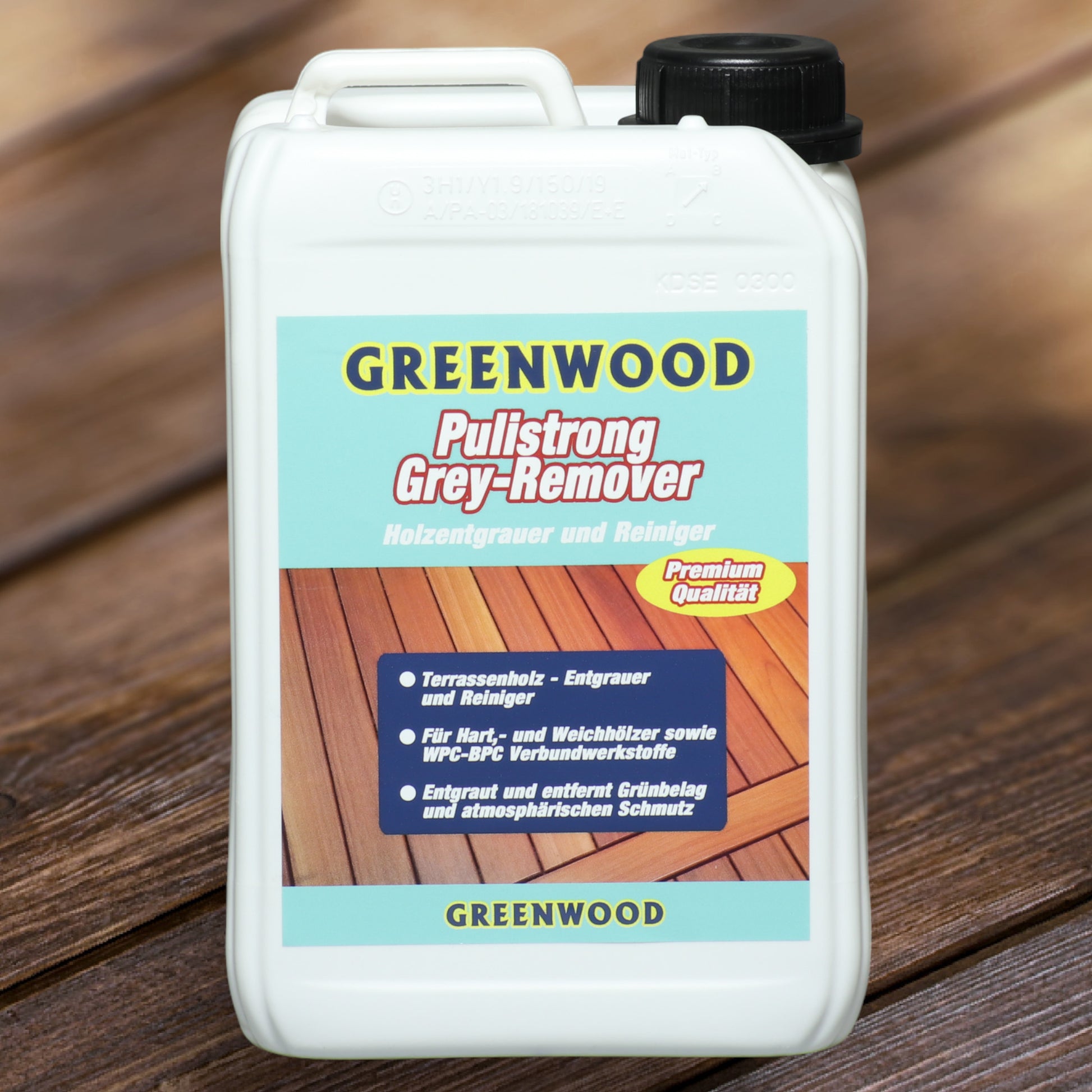 Le Greenwood Pulistrong Grey-Remover - dégrisant - est un nettoyant spécial pour terrasses en bois et en matériaux composites tels que les terrasses en WPC, qui, en plus de nettoyer votre terrasse, élimine également le voile grisâtre qui la recouvre.